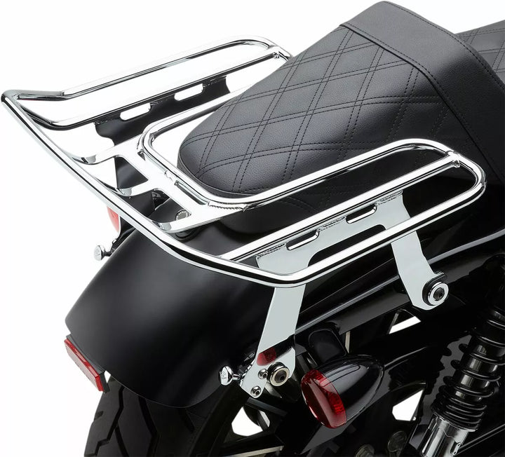 Az állvány teteje körülbelül az ülés tetejével, és minden állvány hátul van, vannak helyek, ahol a bungee zsinórokat vagy a szerelőszíjakat rögzíthetik, így nem kell többé megcáfolnia a kerékpár Fen S Fender -jét, amikor rögzíti a rakományt, a rögzítő hardveret. Harley-Davidson szerelőkészlet., Ha az utángyártott ülés nem nyereg, vagy a Lucky Daves lép fel, akkor nézzen meg a nyílás méréseire, hogy az állvány illeszkedjen a kerékpár ülésén.