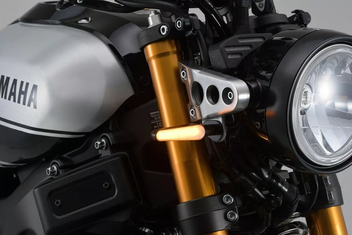 Ötvözött ház., Könnyű rögzítés M8 szálakkal., Első és hátsó részre jelölve, rezgéscsillapító integrált., DC12V teljesítményhez / nem fog működni 6 V / AC12V., Pár / 2 mutató esetén.