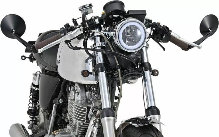 Belső átmérőjű bilincs: Ø 30 mm, beleértve. 2 távtartó (22,2 és 25,4 mm) a közvetlen rögzítéshez, anyagi tükörkar: alumínium, opcionális rúd végső adapterek használhatók, anyagi tükörfej: alumínium CNC felülettel vagy ABS -vel