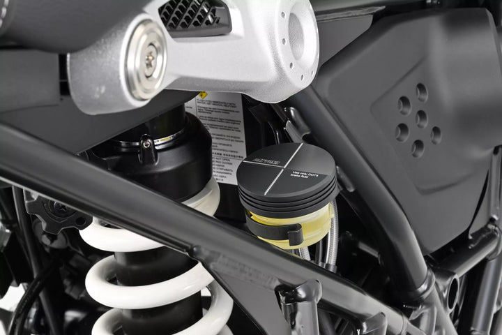 CNC-marmozott alumínium mesterhengeres tartály a hátsó fékből fekete és pisztolyfém szürke, kettős néven, az OEM tömítéssel / membránnal használva