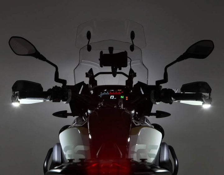 Készlet T3 jelkapszulák a kézvédelem külső oldalára szereltek, az út felé irányítva. Ez egy könnyű köpenyt hoz létre az egész kerékpár körül, amely minden szögből látható - még oldalról és a levegőből is.