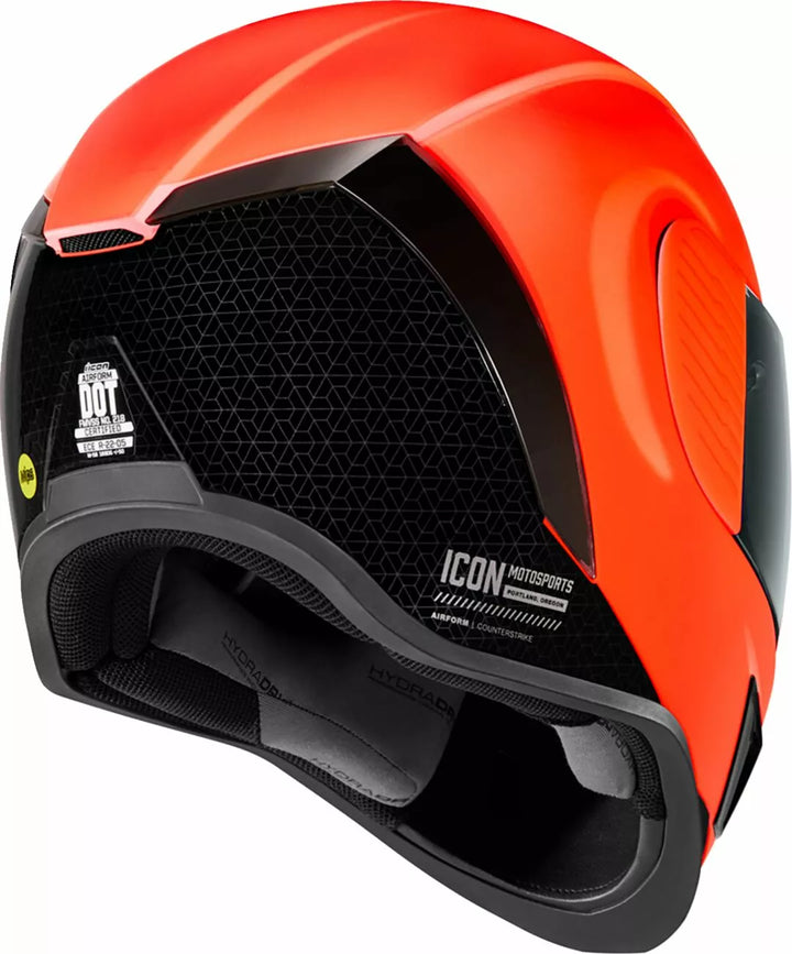 Fröccske öntött polikarbonát héj az erősséghez, a prolock ™ pozitív pajzs záró rendszer, folyamatos szellőztető rendszer, FAG-mentes ikon optika ™ pajzs Rapid-Reale ™ rendszerrel, faragott nyaki tekercs, belső légáramlás geometria, belső csepp-látványos látványt csak akkor szabad használni A hangszóró zsebek működnek az Icon R.A.U. A Bluetooth eszköz, amely magában foglalja a Clear & Dark Smoke Icon Optics ™ pajzsot, a Dark Smoke DropShield ™ -et tartalmazza, a Black Airform Chin Vent ™ -et tartalmazza