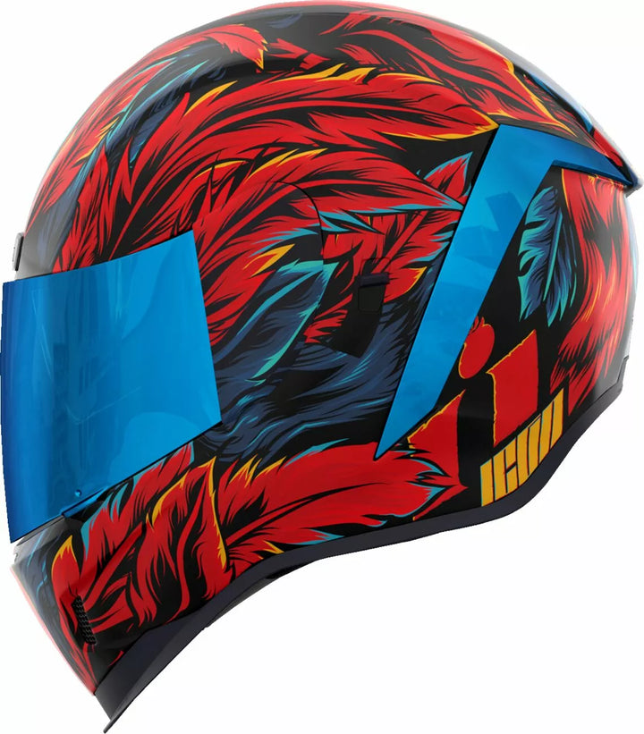 Fröccske öntött polikarbonát héj az erősséghez, belső légáramlás geometria, folyamatos szellőztető rendszer, sculpeed nyakhullám, fag-mentes ikon optika ™ pajzs Rapid-reale ™ rendszerrel, Prock ™ Positive ™ írórendszer, belső csepp vízalapú, csak akkor használható, amikor a fő arcpajzs a teljes bezárt helyzetben van. A hangszóró zsebek működnek az Icon R.A.U. A Bluetooth eszköz magában foglalja a Clear & RST Blue Fag-Free Optics ™ pajzsot