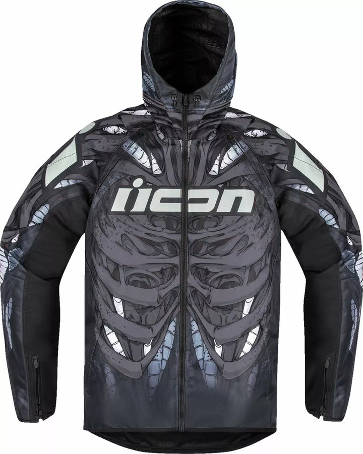 Airform Manik'r ™ grafika a kabát elülső és hátulján, 420D poliészter alváz 300D poliészter belső megerősítő, PU-bevonatú héjú anyag, DWR kivitelben, D30® eltávolítható Viper hátsó védő; Könyök- és vállak védekezői, bungee zsinór stílusú húzózsinór, Airfly ™ középső hálópanel mellkasi és hátsó cipzárral ellátott szellőzőnyílásokkal, szellőztetett mandzsetta cipzárakkal, hátvédelem EN 1621-2 1. szint