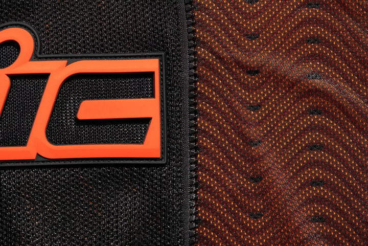 Tartós 300D poliészter és Iron Weave ™ háló alváz, 1,2 mm-1,4 mm tracSpec ™ bőr az elsődleges ütköző zónában, állítható derék- és karszíj, Icon® Sport Fit, YKK® cipzárak, hátsó védő EN 1621-2 1. szint, EN170-70-2