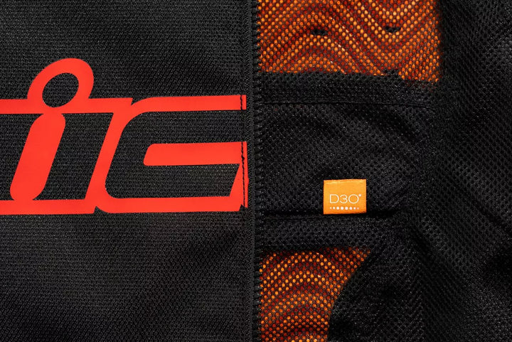 Tartós 300D poliészter alváz belső megerősítéssel, ICON® Sport Fit, Hálószellőztető panelek, állítható derékpántok, YKK® cipzárak, hátsó védő EN 1621-2 1. szint, EN 17092-4: 2020-A osztály