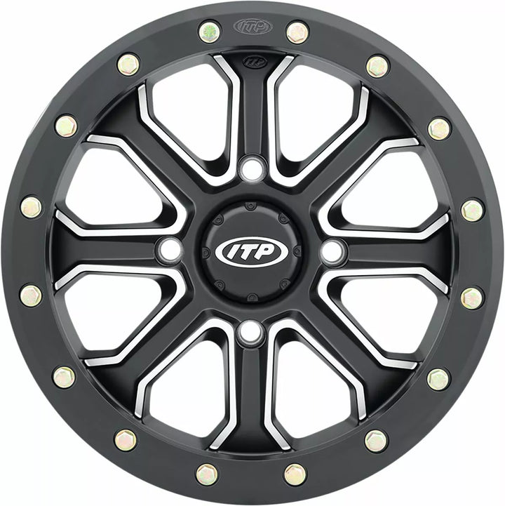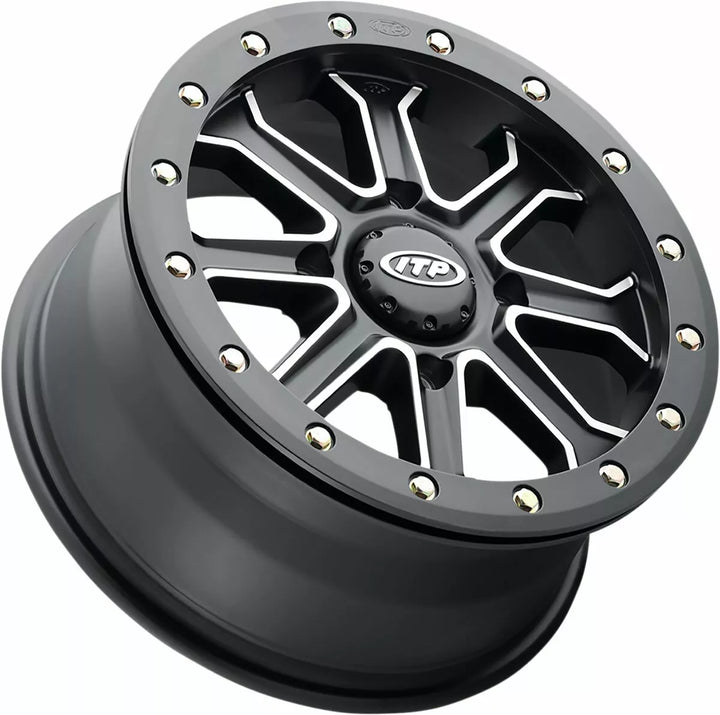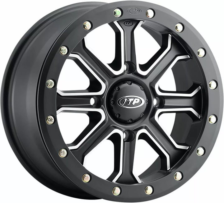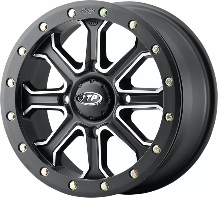 A Beadlock Design biztosítja a külső gyöngyöket igényes környezetben ülő helyzetben, közelebb az OE eltolásokhoz az optimális felszerelés és a teljesítmény érdekében, az ITP exkluzív "rock páncél" belső kerék ajak, matt fekete kivitel, megmunkált élekkel, középső sapkával és szelep patkányokkal, EU terhelés,