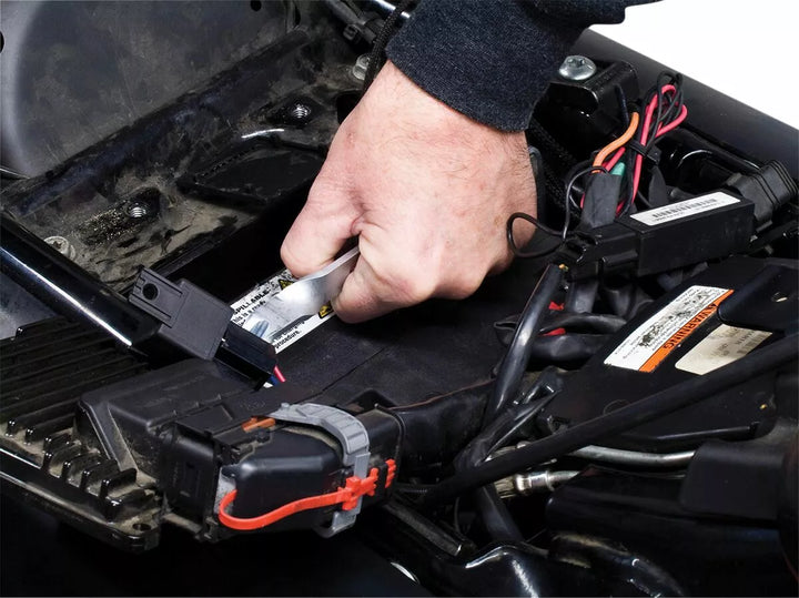 Az autóipari akkumulátorokhoz gyártott nagyobb szerszámok után modellezve, de a Harley-Davidson® modellekhez megfelelő méretű, könnyen felemeli azokat az akkumulátorokat, amelyek rendkívül szorosan illeszkednek a rekeszhez, az Egyesült Államokban.