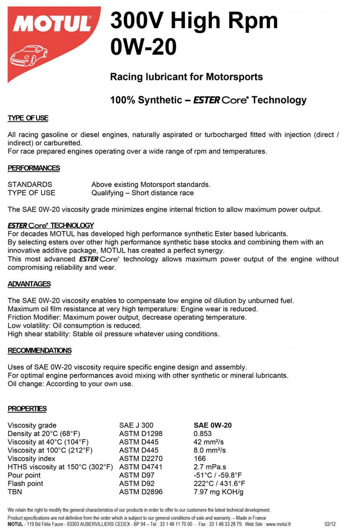 Motul 300V magas fordulatszám 0W20 2L (10 db/karton)