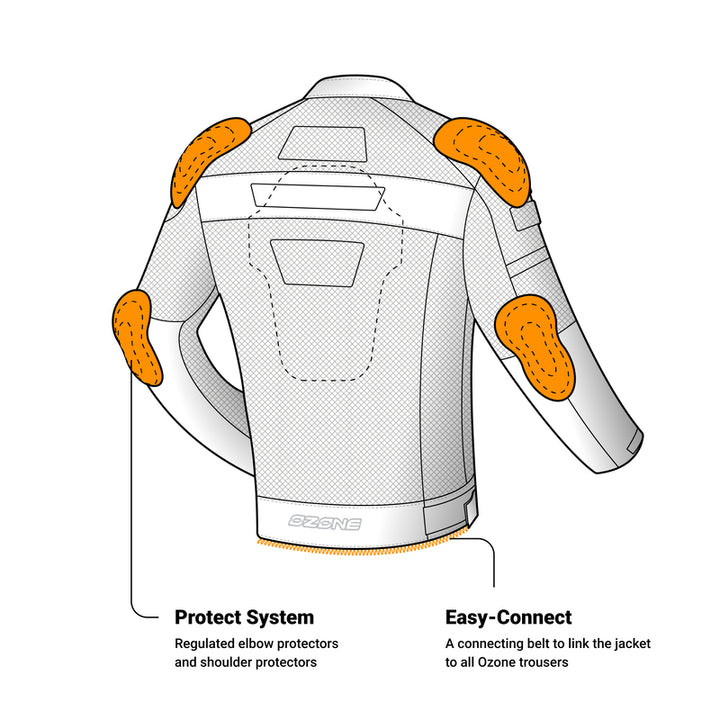 Ózon Darts egy könnyű és szellőztetett motorkerékpár dzseki az adáshoz létrehozott maximális kényelem meleg hőmérsékleten- Vel Nagy hálópanelek az elülső, a hát és az ujjakon Biztosítja Optimális légáramlás, miközben megtartja a magas szintű biztonságot CE tanúsított védelem a vállakon és a könyökben.