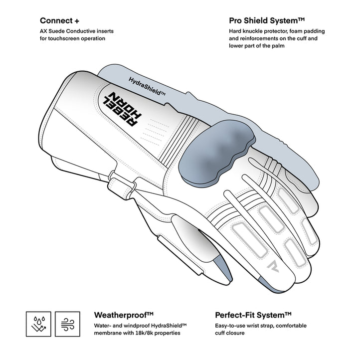 Lázadó Nyomjelző WP az vízálló és funkcionális motorkerékpár kesztyű, túrázáshoz és hosszabb utazásokhoz tervezték, különböző időjárási körülmények között. Egyben Hydrashield ™ membrán, kemény menedékhely a csuklón és a tenyérben lévő megerősítéseknél, kombinálják Biztonság, kényelem és védelem az eső és a szél ellen- A kesztyűk kompatibilisek az érintőképernyőkkel és felszereltek A bal hüvelykujj gyakorlati szemüvegszárítója A fokozott láthatóság érdekében az esőben.
