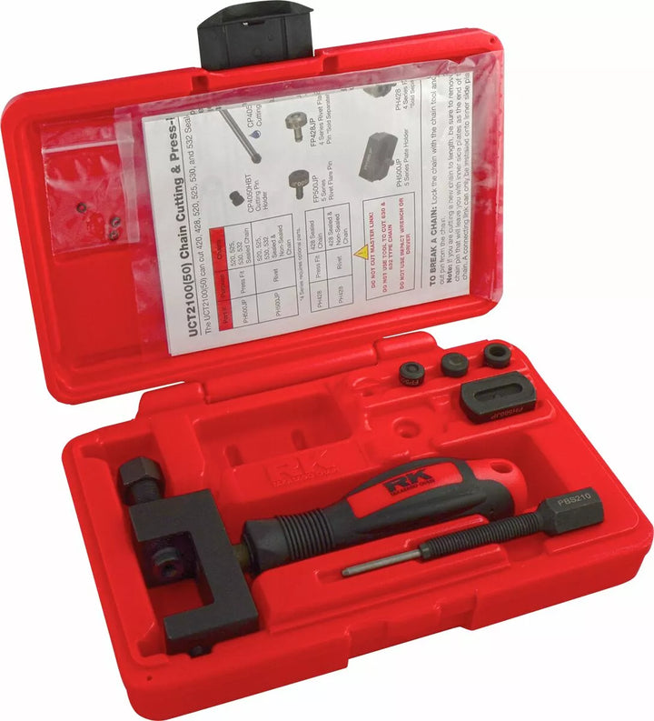 Az új kialakítás lehetővé teszi a szerszámtestbe és a nagyobb nyomású csavarba történő rögzítést a szerszám alkatrészeinek eldobása nélkül, könnyen megismerhető szoros tolerancia 50 o-gyűrűs lánc a megfelelő mélységig a klip vagy a reszelt link telepítéséhez, az új PLIP telepítéshez, az új PLIP telepítéshez, az új oszloplemezhez és a reszelt lemezhez, a mostantól átrontva a Plare Garre Garge-t, és a Lézer Gravírozást az Explare Redesigned Flare Pin-hez, a Plare Pin-hez, és a Lézer Graving-számot az egyszerűbb részekhez. A gyors és egyszerűen megszakítja az 50 típusú láncot, a Fleres Rib Special RIF speciális RIF speciális RIF 'Chans Special Ri Ried 530PR -jét, a szerszám nem képes 420/428 típusú láncokat eljuttatni FP428JP & PH428 nélkül (külön -külön eladva).