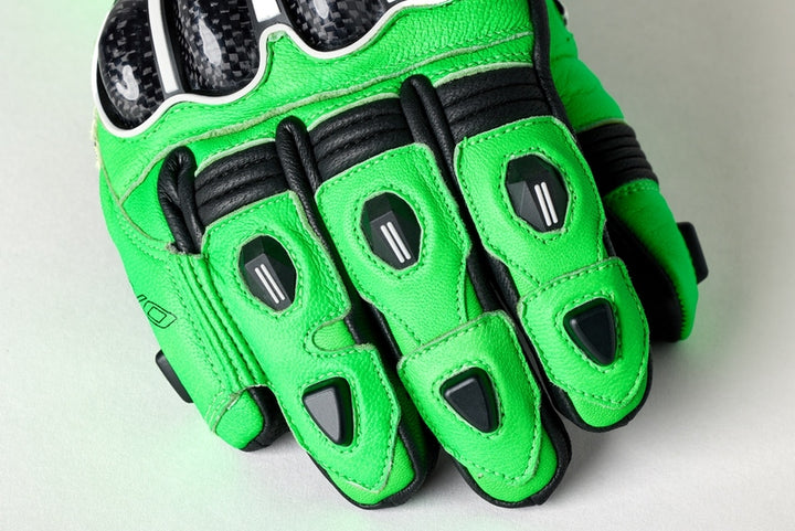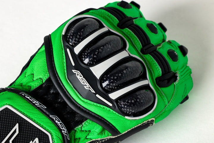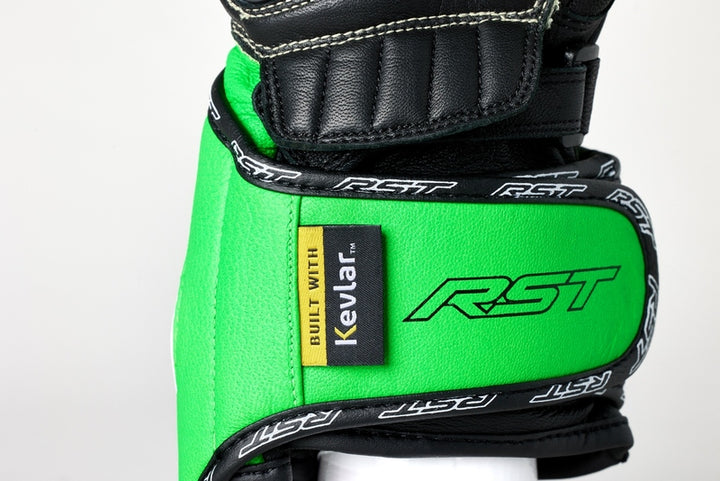 A kesztyű mind a teljes szemcsés tehénbőr, mind a kenguru bőrből készült, CE 1. szintű széncsukló-védővel rendelkezik az ütközésvédelem érdekében. Az aramidszál a pálma varráson és az alsó rétegen, valamint a kettős rétegű kenguru bőrrel és az RST pálma csúszkával védi a tenyerét nagysebességű csúszás esetén, míg a dupla csukló és a mandzsetta bezárása biztonságos illesztést kínál. A DuPont ™ aramid bélése a kesztyű többi részében megakadályozza a szakadást és az elasztikus összekapcsolt ujjait, hogy megakadályozzák az „ujjhekercset” anélkül, hogy befolyásolnák az elérést vagy a rugalmasságot a sebességváltó megváltoztatásakor.