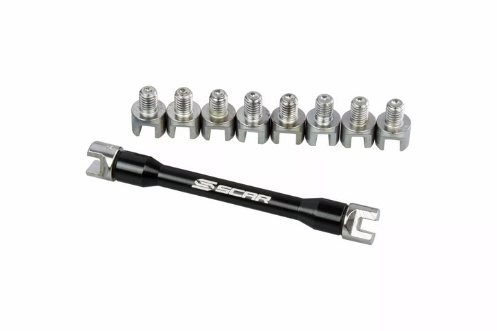 A CNC alumíniumból fakadó, cserélhető tippek nyolc méretű hangbimbót illesztenek, a tippek hővel kezelt acélból készülnek
