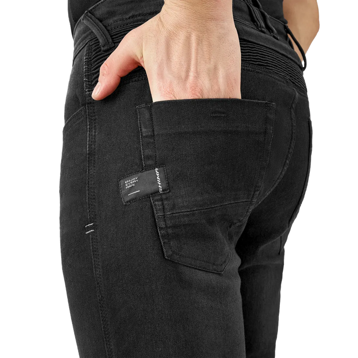 A nadrág felszerelve van 1. szintű légierő -védők a csípőnél és 2. szintű gflexx térdvédelem, amely magasságban beállítható a külső zsebekben lévő tépőzáras tartókon keresztül. Ez lehetővé teszi, hogy könnyedén finomítsa a borítókat anélkül, hogy eltávolítaná a nadrágját.