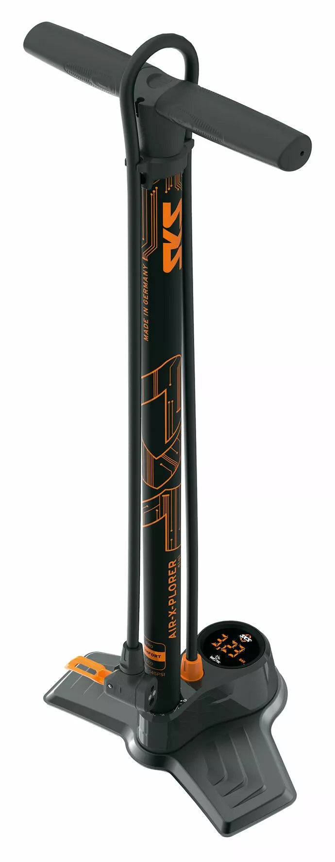 Az SKS Air-X-plorer DIGI 10.0 padlószivattyú kiváló minőségű LED digitális nyomásmérővel lenyűgöz. , Az első osztályú érzékelő technológia garantálja a nagyméretű pontosságot, és pontos légnyomás-értékeket biztosít 10 bar-ig (144 psi)., Egyéb jellemzők közé tartozik a lágy taposó fogantyú fogakkal, a Für gumiabroncsok hosszúságával, az extra hosszú nagy nyomású szeleptípusokhoz, a nagy acélcső és a szilárd fém alap garantálása a jó energiaátvitelhez, biztosítva a magasabb nyomást (476 cm³ Streke). Akkumulátor: 2 x mikro Aaa., Németországban készült.