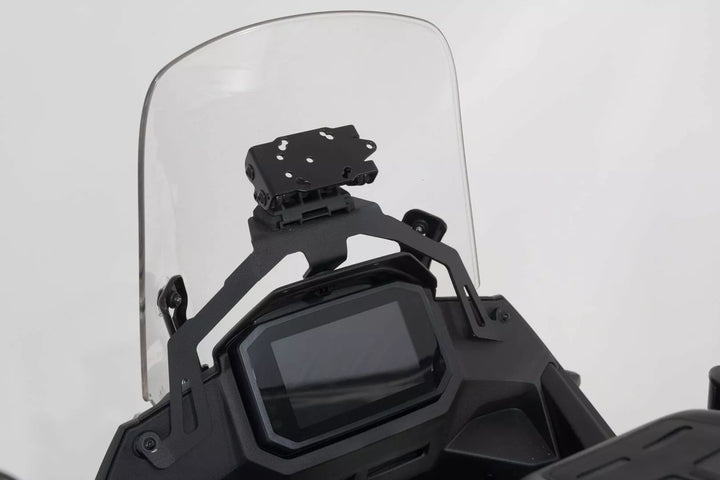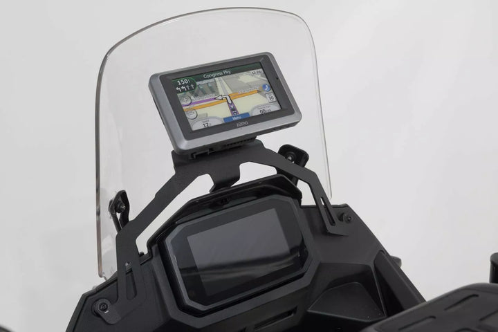 In Order to Achieve Optimal Positioning, A Powder-Coated Steel Plate Ensures The Stable Attachment of the GPS Mount on Original Attachment Points in the Cockpit, Clever Positioning, Vibration Dampen and Easily Removable: The Bike-Specific GPS MOFE Combines All Of These POINTS IN THE COCKPIT, GPS MOUNT MADE OF BLACK, POWDER-COATED STEEL WITH Quick-Lock Mechanism Made of Glass Fiber Reinforced Plastic, Made to Fit Each Bike Model for Optimal Helymeghatározás, eltávolítható, elfordítható és sokk-boorbens tartás a szokásos GPS-modellekhez és a NAVI eset Pro készülékekhez vagy a SW-MOTECH-tól származó kemény esetekhez, a kézbesítéshez, 1 x GPS-szerelés a pilótafülkéhez, rögzítő utasítások, rögzítő anyag