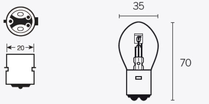 V Az alkatrészek cseréje elengedhetetlen az Ön biztonságához, látásához és látásához; Akár motorkerékpár, quad vagy robogó.B35 típusú Bulbs12V - 35/35WFitmentba20d/732715,17 izzóbázis: BA20D Homológia: Homologated és Homologué Szilárdság: 35/35W Folt: 12V