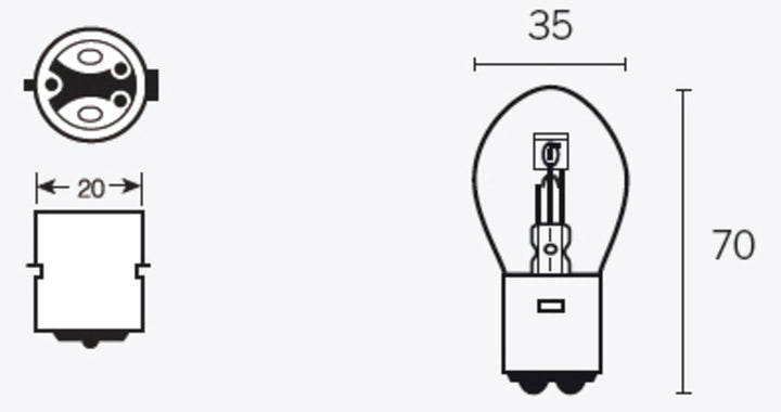 V Az alkatrészek cseréje elengedhetetlen az Ön biztonságához, látásához és látásához; Akár motorkerékpáron, quadon vagy robogóján.B35 Típus izzók 6V-35 /35WFitmentba20d /7324 /121.50 izzóbázis: BA20D ECE Kategória: B35 Homologation: Nem meleg csomagolás