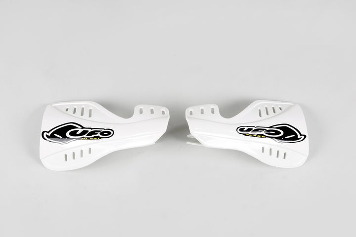 Az UFO műanyagok híresek a minőségükről és a terepjáró elleni ellenállásukról. Úgy tervezték, mint az OEM lágyítók, és könnyen felszerelhetők. A mai MXGP legnépszerűbb csapatok és a világbajnokok használják őket. Az MX típusú kézvédők, az injektált műanyag szerelőkészletből, az olaszországi színben található, fehér: fehér