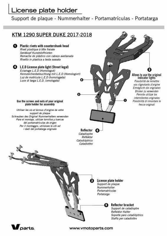 V alkatrészek rendszámtábla fekete KTM 1290 Super Duke R C8-PM006