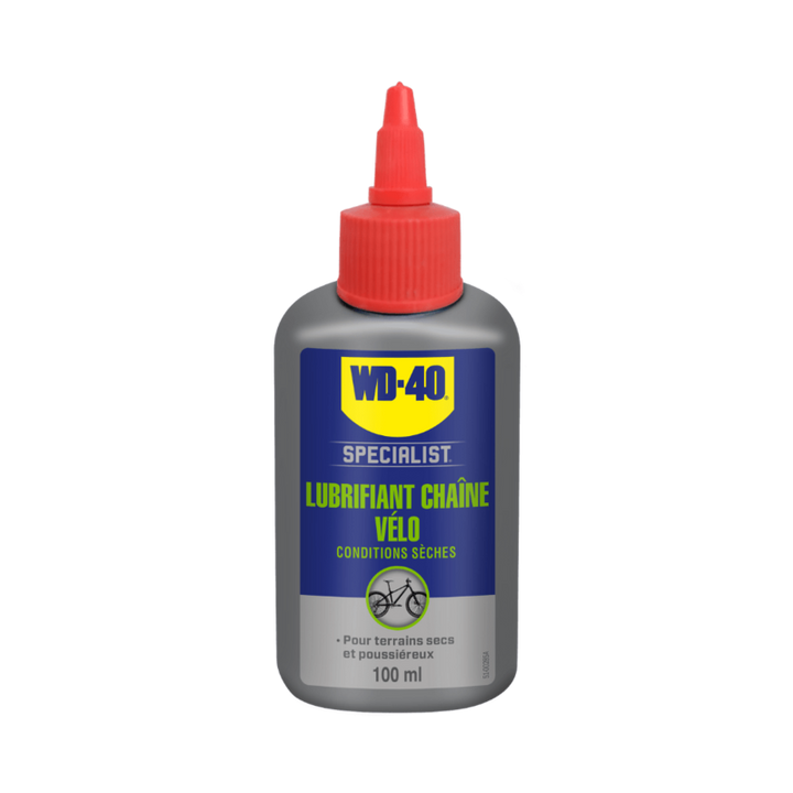 A WD-40 Specialist® Bike Dry Lánc kenőanyag egy nagyteljesítményű kenőanyag, amelyet kifejezetten a száraz és poros körülmények között készítenek. A száraz kenőanyag -képletben lévő polimerek gyorsan száraz filmet képeznek a lánc védelme és a szennyeződés száraz vagy poros körülmények között. Megakadályozza a súrlódás károsodását és a súgó meghosszabbítását a lánc élettartamának. A viasz nélküli képlet nem épül fel a lánc összeköttetések és a hajtáslánc belsejében.
