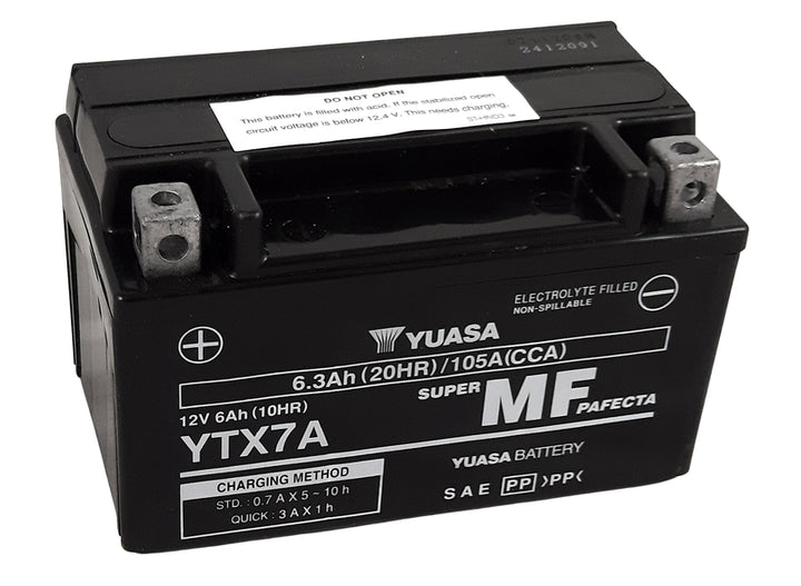 Yuasa YTX7A-FA egy Nagy teljesítményű AGM-akkumulátor, gyár aktiválva és készen áll a közvetlen használatra. Ez tökéletes Motorkerékpárok, robogók, quad kerékpárok és egyéb járművek ami megköveteli Megbízható kiindulási teljesítmény, hosszú élettartam és minimális karbantartás.
